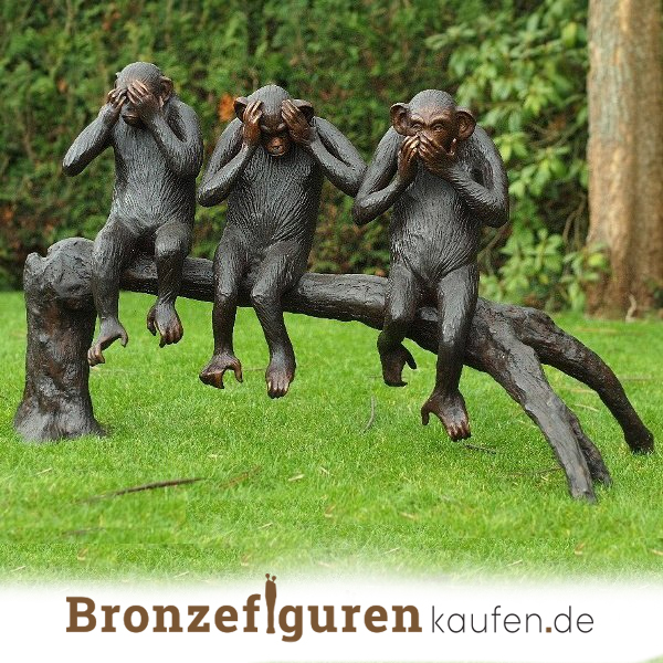 Tierfigur von Affen genannt; „Hören, sehen und sprechen Sie nichts Böses.“ Diese Affen stellen den bekannten Ausdruck „Hören, sehen und sprechen Sie nichts Böses“ dar. Dieser Ausdruck stammt vom chinesischen Gelehrten Konfuzius. Er sagte zu seinen Schülern: „Schauen Sie nicht zu, hören Sie nicht zu, sprechen Sie nicht aus und konzentrieren Sie sich nicht auf das, was dem Anstand widerspricht.“ Diese Bronzefigur ist mehr als einen Meter breit!.