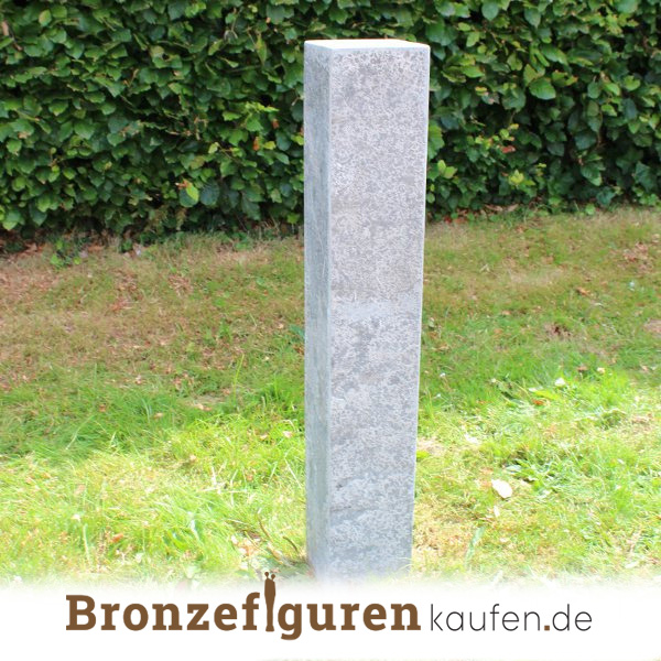 Diese Gartenskulptur aus Bronze kann auch schön auf einem Sockel platziert werden, den Sie direkt bestellen können. Dieser Sockel besteht aus Blaustein und ist 90 cm hoch, 15 cm breit und 15 cm tief. Siehe auch das 2. Foto.