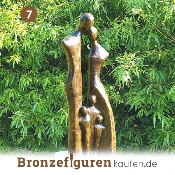 Eine Familienskulptur in abstrakter Form von 5 Personen. Diese schöne figurative Gartenskulptur kann auch schön auf einem Sockel platziert werden, den Sie direkt bestellen können. Dieser Sockel besteht aus Blaustein und ist 85 cm hoch, 30 cm breit und 30 cm tief.