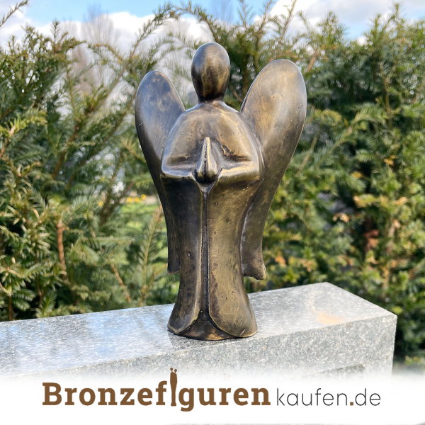 Bronze Grabfigur für das Grab mit dem Namen: Schutzengel. Ein wunderschöner bronzener Engel, der über das Grab wacht.