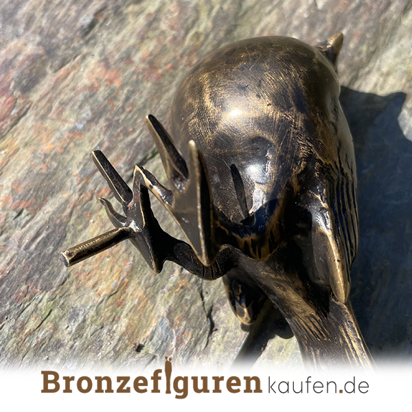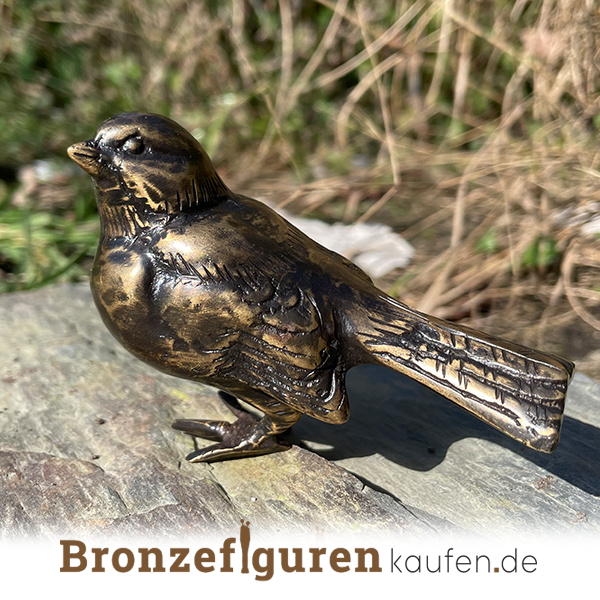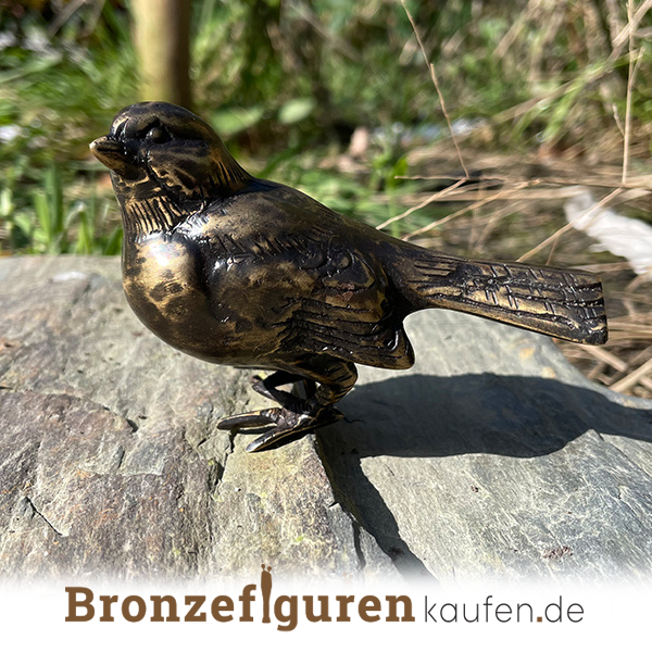 Bronzener Grabschmuck genannt: kleiner Spatz. Ein wunderschöner Spatz aus Bronze, der auf dem Grab montiert werden kann.